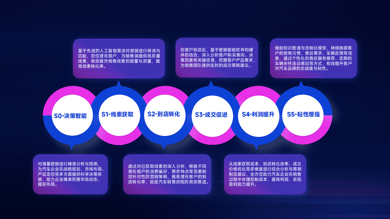通过拓宽潜在客户来源、、、优化线索分配并提高到店转化率,,,以增强销售效率。。同时,,,利用线索数据不断优化分析模型,,,有效提升转化率,,,,扩大营销影响力。。。。